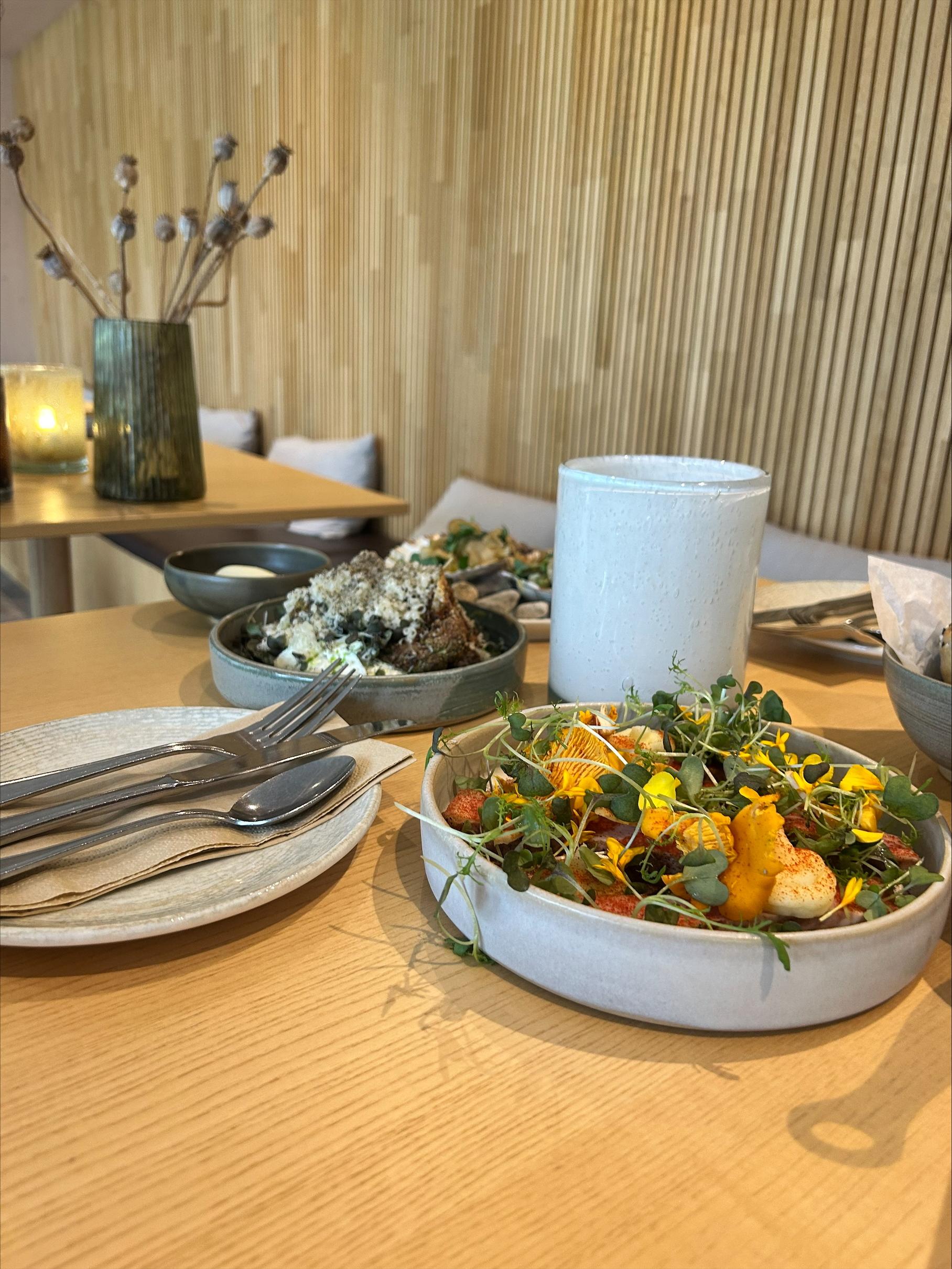 Andrum Spa, där kockarna fixar 3 serveringar, urval av säsongens favoriter och smakrika överraskningar. Små rätter, stora smaker – perfekt att dela, prata och njuta av tillsammans.
